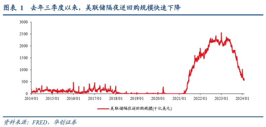 。随着隔夜逆回购(ONRRP)规模快速下降,市场在会前对放缓缩表(QT Taper)有所预期。虽然鲍威尔表示此次会议对缩表政策进行了讨论,但没有额外信息透露给市场,而是表示计划在3月会议上深入讨论缩表政策调整。。降息和缩表能够同时进行的逻辑是,两者都是伴随经济正常化、进而货币政策正常化的手段。