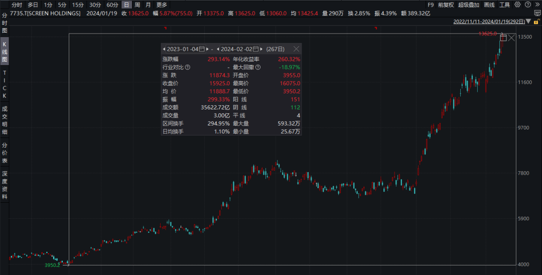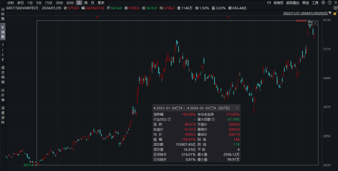 这是一家化工企业,现已成为半导体材料的龙头公司。关于这家公司的更多详细资料,我们在之前也有提到过,感兴趣的朋友可以查阅《日本股市难得的核心资产:信越化学》。