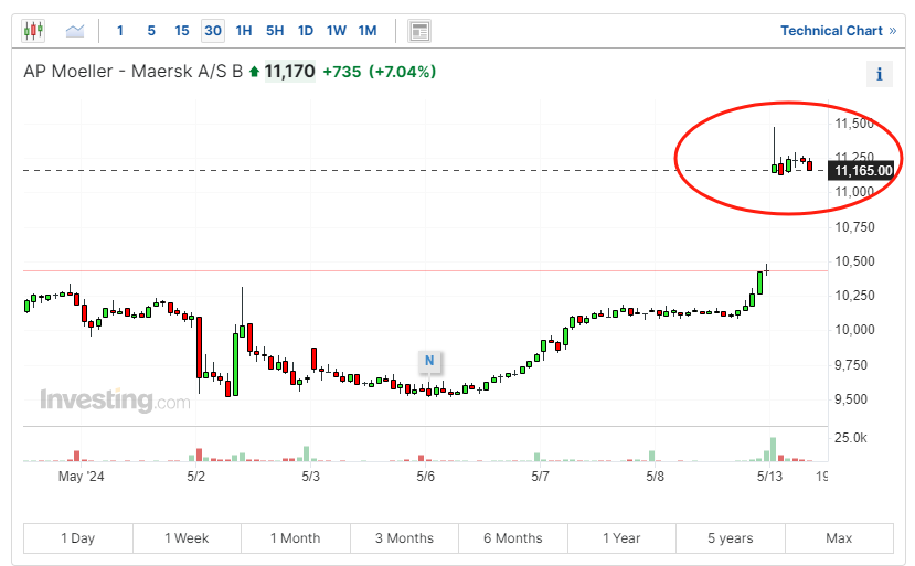 英为财情Investing.com - 丹麦航运巨头马士基(Moeller – Maersk)(CSE:MAERSKb)(AMKBY (OTC:AMKBY))股价周一劲升逾7%,这主要得益于运费的急剧上涨。