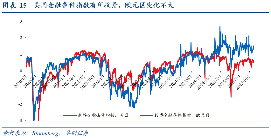 1、金融条件:美国金融条件指数有所收紧,欧元区变化不大