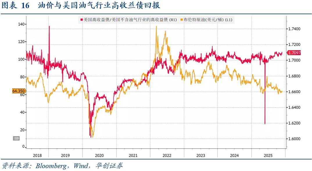 美国油气开发企业的垃圾债相对于垃圾债整体市场的回报表现与油价走势高度一致。油价上涨不利于实体经济中的大多数行业,但有助于改善油气开发企业的财务状况,降低该行业公司债的信用利差水平。