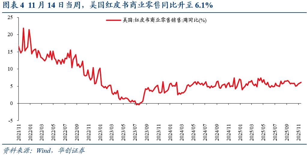 美国零售销售回升。11月14日当周,美国红皮书商业零售销售同比6.1%,11月7日当周为5.9%。