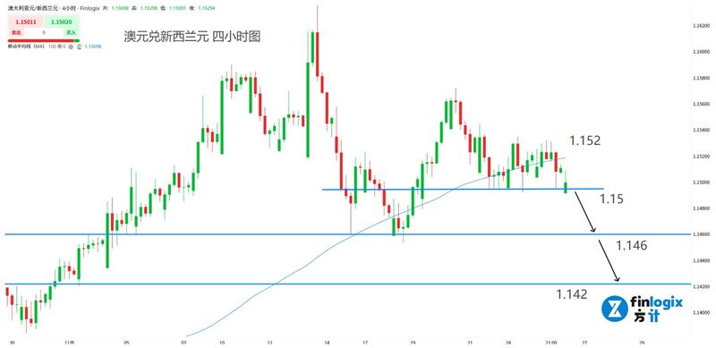技术面:100均线向上,多头趋势强劲,空单逆向设好止损。交易策略以配合数据发布后的动能,突破跟随波段操作为主。如果新西兰联储释放鹰派信号,那么澳元兑纽元的空头力量会大增,可能击穿关键颈线1.146关口。