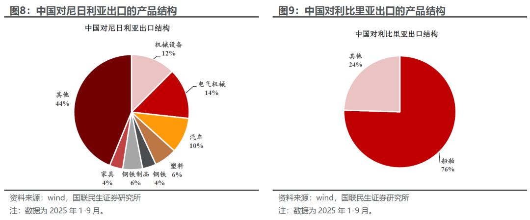 另辟蹊径:非洲的新“增长极”。我们在之前的报告中,我们详细阐述了中非贸易的主要增长特点,在非洲经济工业化的动力下,中国对非洲的贸易越来越多从传统的基建、采矿向制造业转向:机械、电气、汽车、船舶等成为越来越重要的增长点。