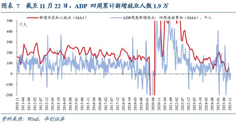 ADP周度新增就业升至区间。截至11月22日,ADP四周累计新增就业人数1.9万,前一周为-5.4万。