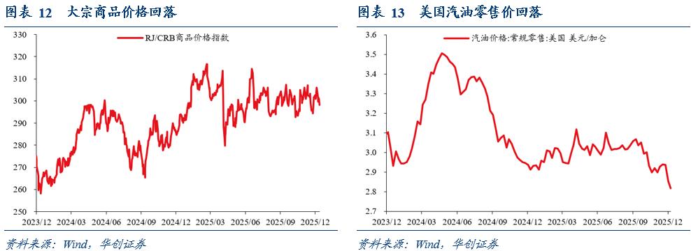 大宗商品价格回落。12月12日,RJ/CRB商品价格指数298.29,较前一周跌2.5%,较前两周跌1.1%。