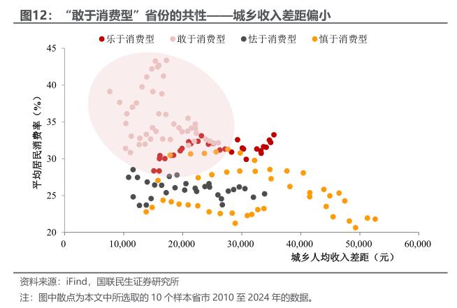 第二,“敢于消费型”省份的城乡收入差距普遍更小。相对均衡的收入分配结构,增强了中低收入群体的支付能力与消费意愿,使得消费增长的基础更为广泛、可持续。