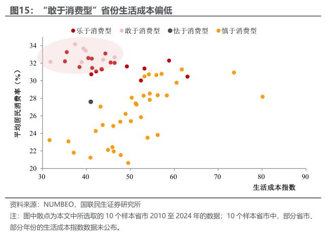 最后,更低的刚性支出为“敢于消费型”省份居民释放了消费空间。无论是从房屋平均销售价格,还是从生活成本指数来看,这类省份居民的住房与日常支出压力均明显更小,使其有更多可支配收入能够转化为实际消费。