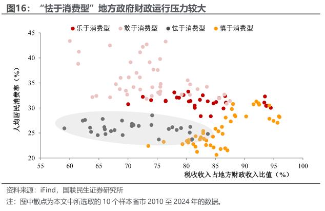“怯于消费型”省份目前正处于经济爬坡阶段,消费发展易受限于地方财力与居民收入的双重约束。居民面临支付能力受限、消费信心不足的困境,容易陷入低消费与低增长相互制约的循环。