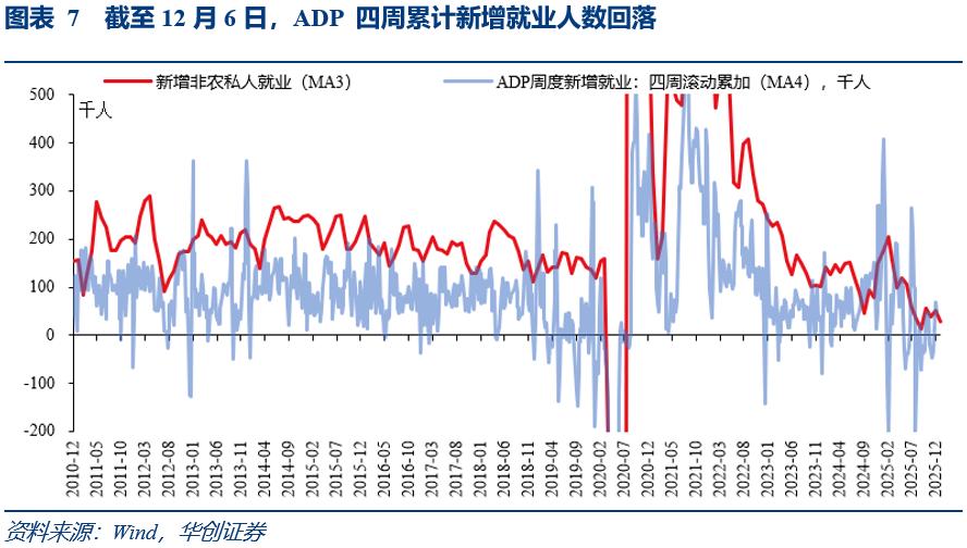 ADP周度新增就业回落。截至12月6日,ADP四周累计新增就业人数4.6万,前一周为7.0万。