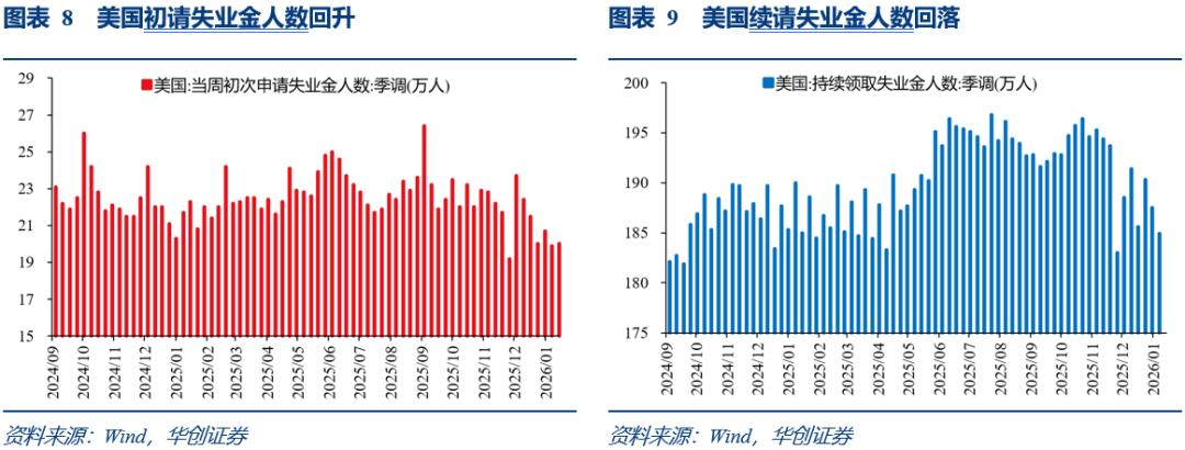 美国初请失业金人数回升,续请失业金人数回落。1月17日当周,美国初请失业金人数20.0万人,前一周为19.9万人,两周前为20.7万人。1月10日当周,美国续请失业金人数184.9万人,前一周为187.5万人,两周前为190.3万人。